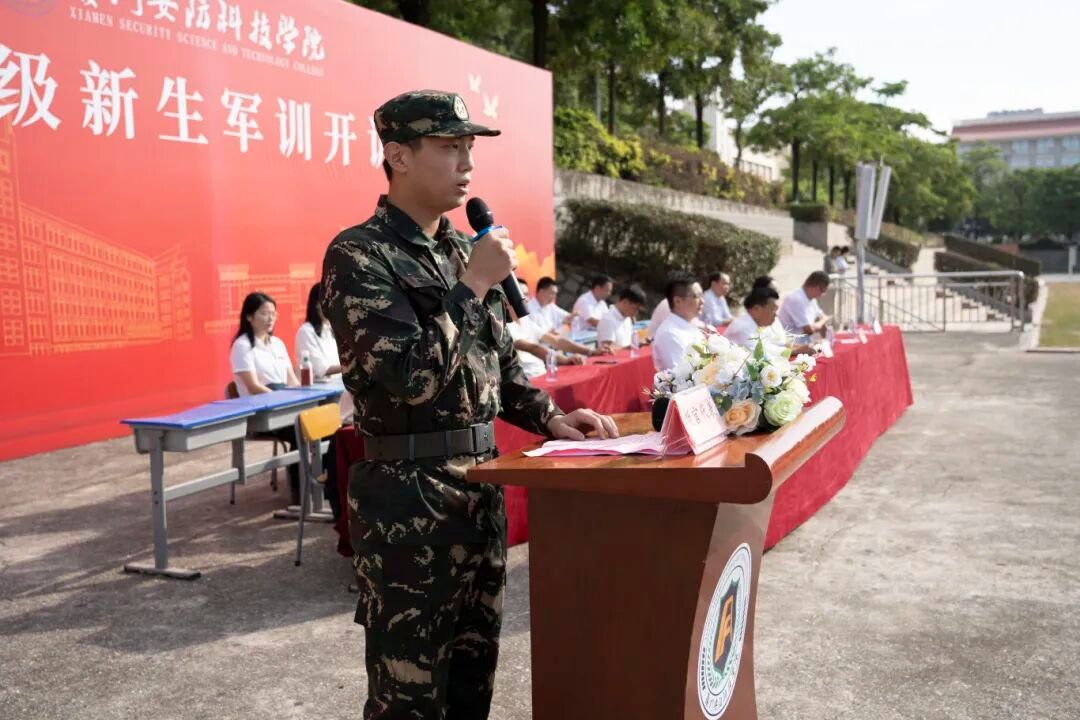 军训教官代表庄承斌在发言中表示,全体教官将严格遵循军事训练规范,以“科学施训、从严治训、文明带训”为准则,帮助同学们在军训中磨炼意志,强健体魄,为未来的学习生活打下坚实的基础。