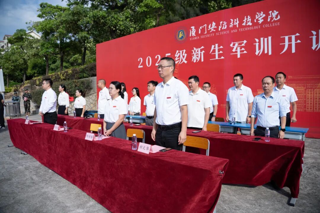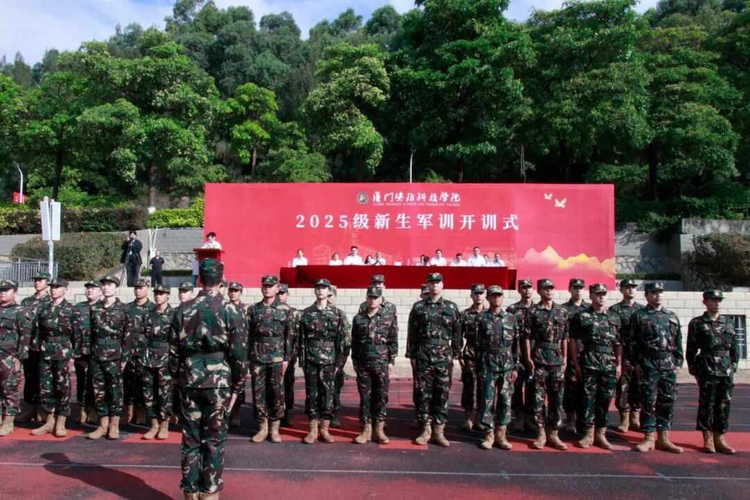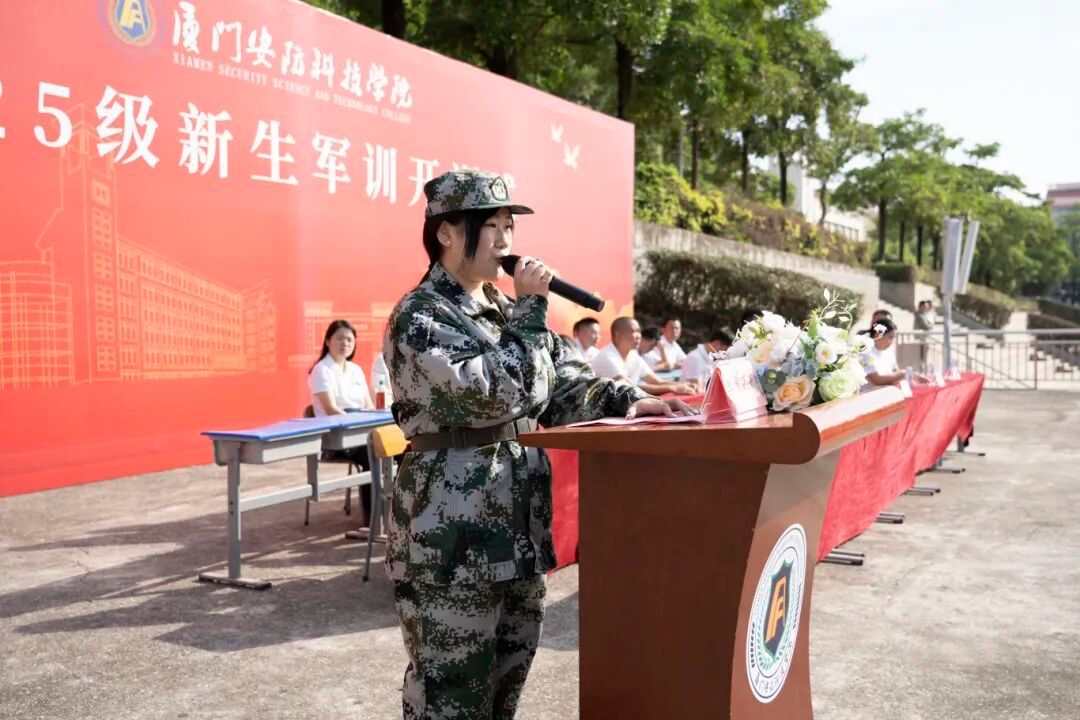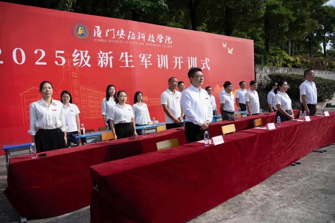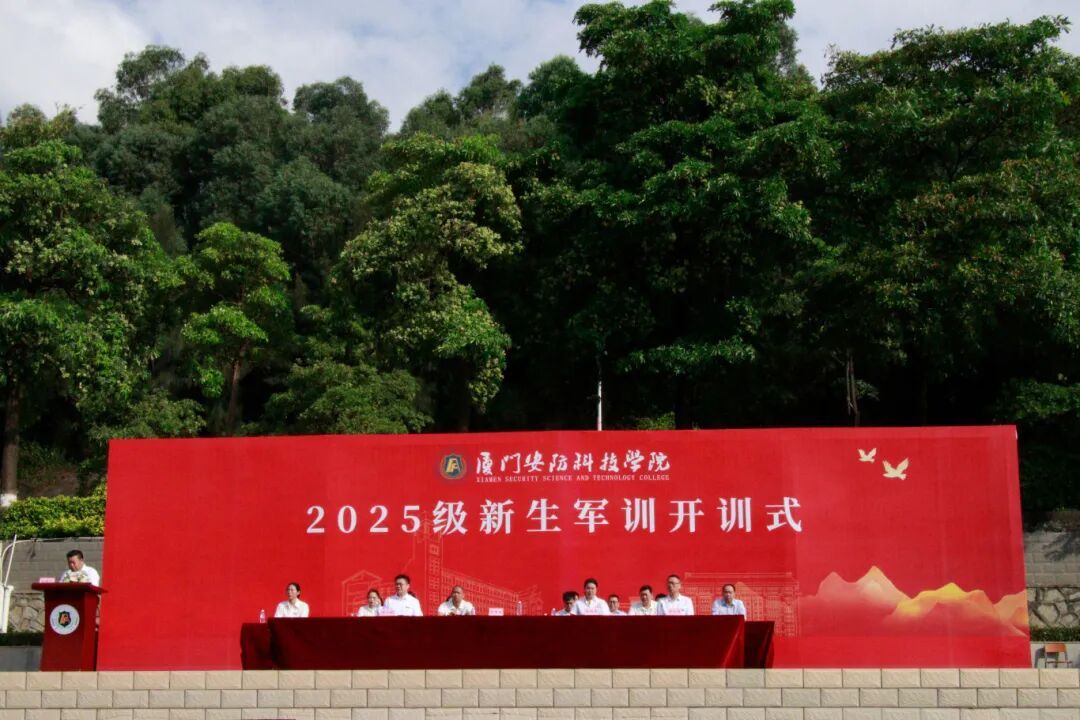2025年10月27日上午,厦门安防科技职业学院举行2025级新生军训开训式。校长宋泽斌、校党委副书记陈丽春、副校长何守信、校长助理郑文华、各二级学院、各部门负责人、2025级全体新生参与开训式。仪式由校长宋泽斌主持。