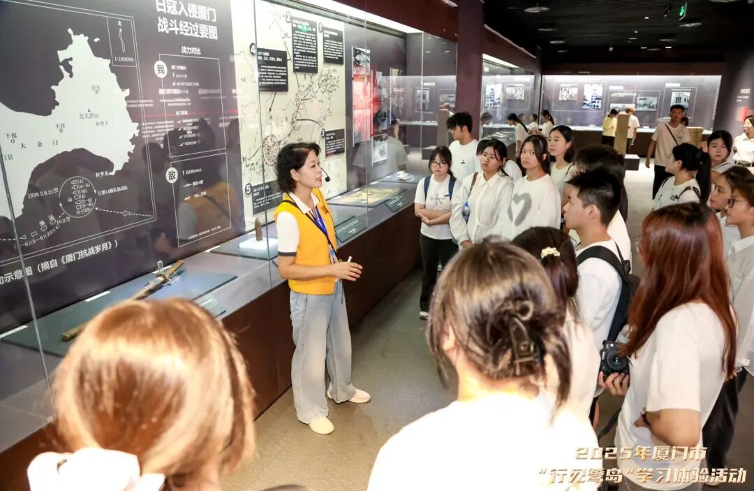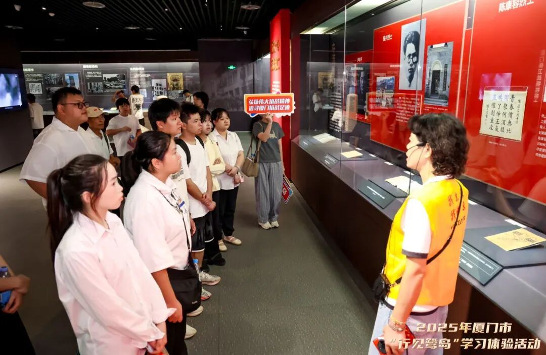 在厦门市博物馆的“厦门抗战风云暨英烈事迹展”现场,同学们跟随志愿讲解员的脚步,透过 110余件文物、史料图片和音视频资料,了解厦门抗战故事,从红色历史中汲取精神养分,进一步坚定理想信念。