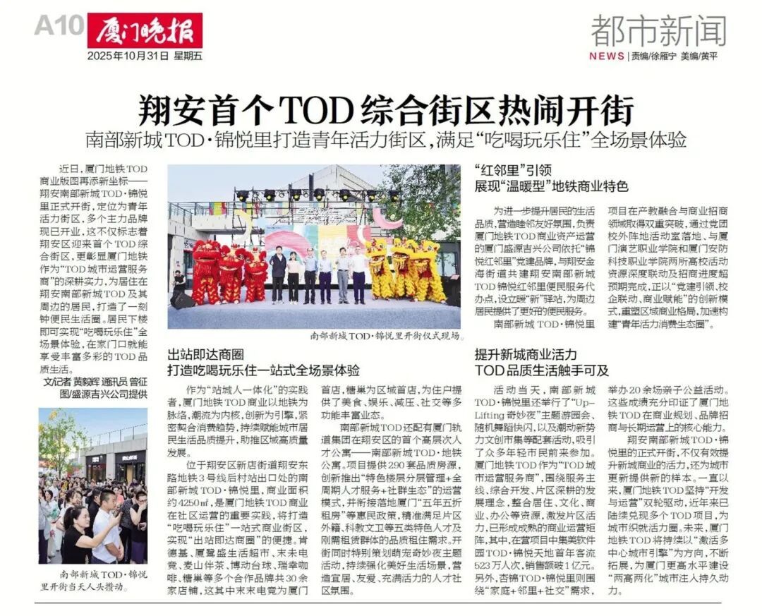 近日,厦门晚报报道,为深化产教融合、拓宽育人路径,厦门安防科技职业学院团委与翔安南部新城TOD·锦悦里达成深度校地合作,共同落地“社团实践活动基地”,以实际行动践行“校地协同、资源共享”育人理念。