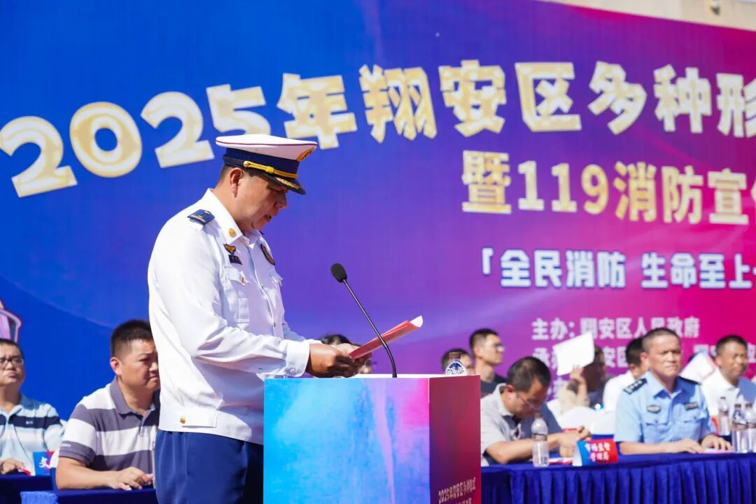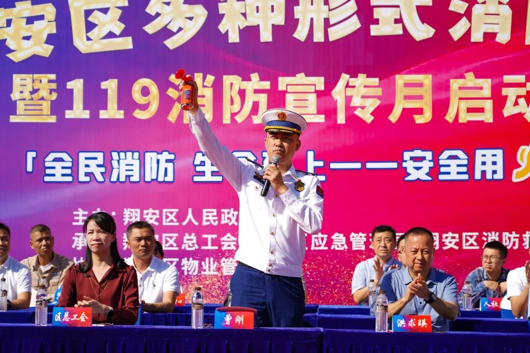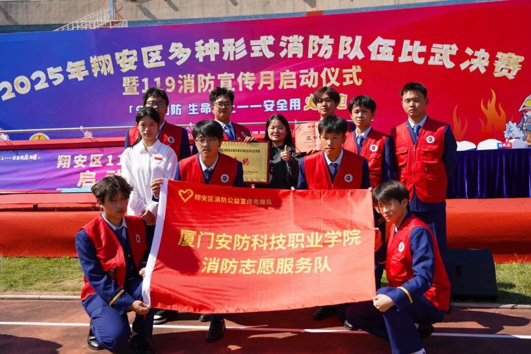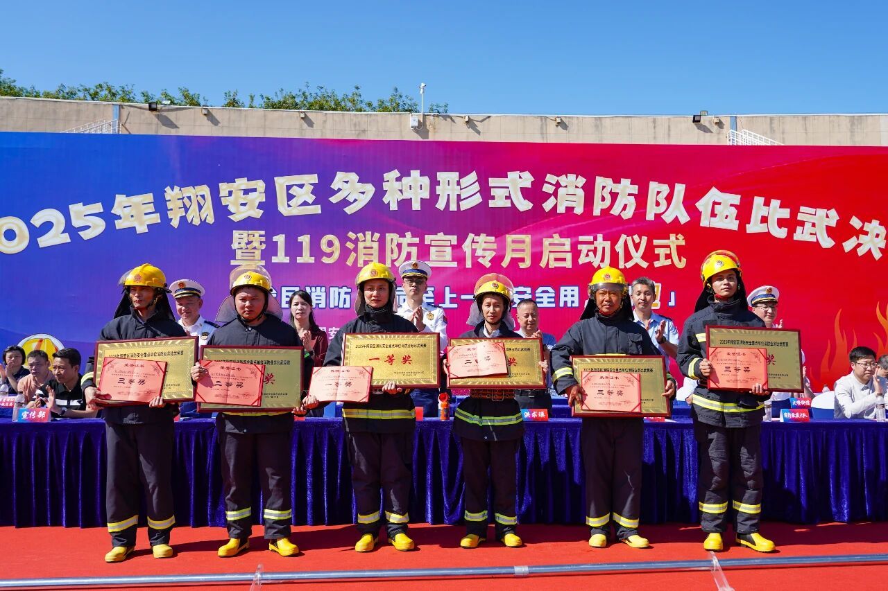 11月7日上午,2025 年度翔安区多种形式消防队伍比武竞赛暨119消防宣传月启动仪式在翔安区人民体育场隆重举行。此次活动由翔安区人民政府主办,区总工会、区应急管理局、区消防救援大队承办,区物业管理协会协办,以“仪式强宣、竞赛促训”为宗旨,为秋冬季节消防安全工作筑牢基础。厦门市消防救援支队副支队长曾刚、翔安区副区长洪求瑛莅临现场指导,区消防安全委员会成员单位代表共同观摩,我校消防专业师生代表及志愿服务队成员受邀参加活动。
