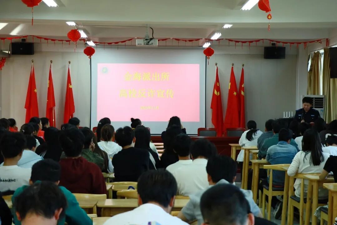 讲座中,金海街道派出所民警以“校园反诈,青春护航”为核心主题,结合当前校园高发的“刷单返利”“游戏账号交易”“冒充客服退款”等典型诈骗案例,深入拆解诈骗分子的作案套路与话术陷阱,向师生详细普及识别技巧。