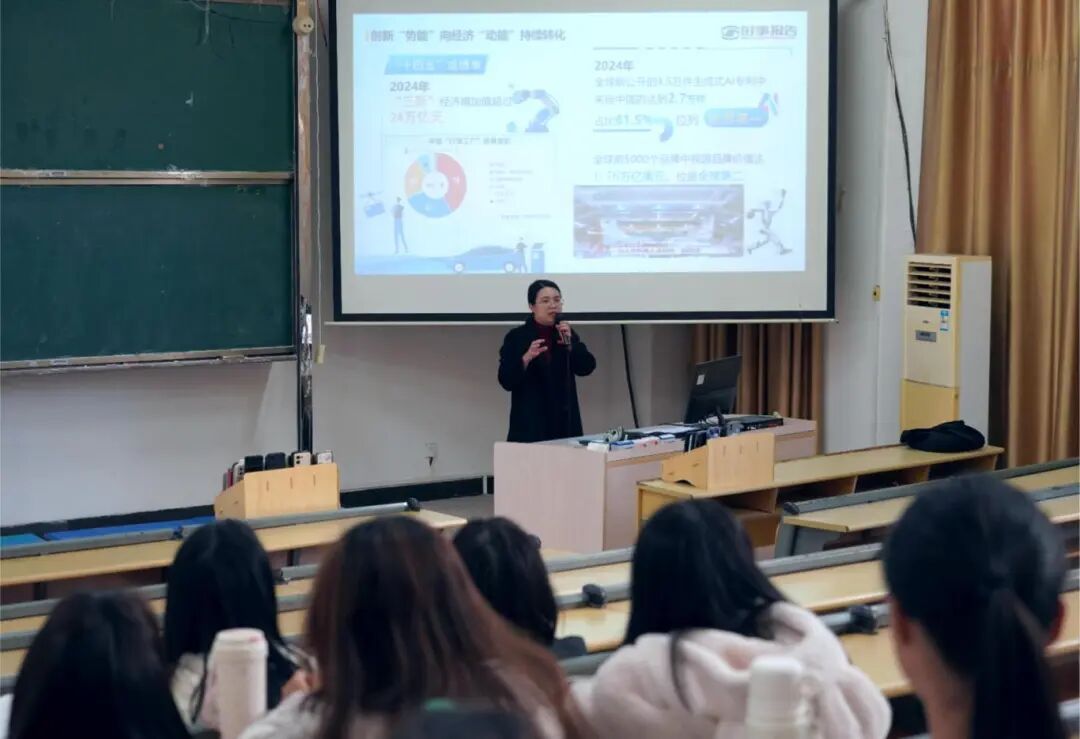 校党委副书记陈丽春围绕《决胜“十四五”奋发向前进》展开专题讲解,陈丽春副书记结合“十四五”时期我国发展取得重大成就,深入分析新时代发展形势与机遇挑战,激励青年学子胸怀“国之大者”,将个人理想追求融入国家发展进程,在强国建设、民族复兴的伟大征程中找准自身定位、实现人生价值。