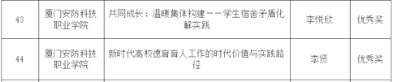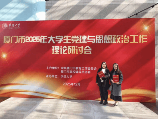 12月26日,由厦门市委教育工委、厦门市高校辅导员协会联合主办的2025年厦门市大学生党建与思想政治工作理论研讨会在华侨大学顺利召开。会上,公布了2025年厦门市大学生思政工作精品项目、大学生党建与思想政治教育理论研究获奖论文评选结果,我校健康学院院长助理李贤老师、教育学院辅导员李悦欣老师荣获优秀奖