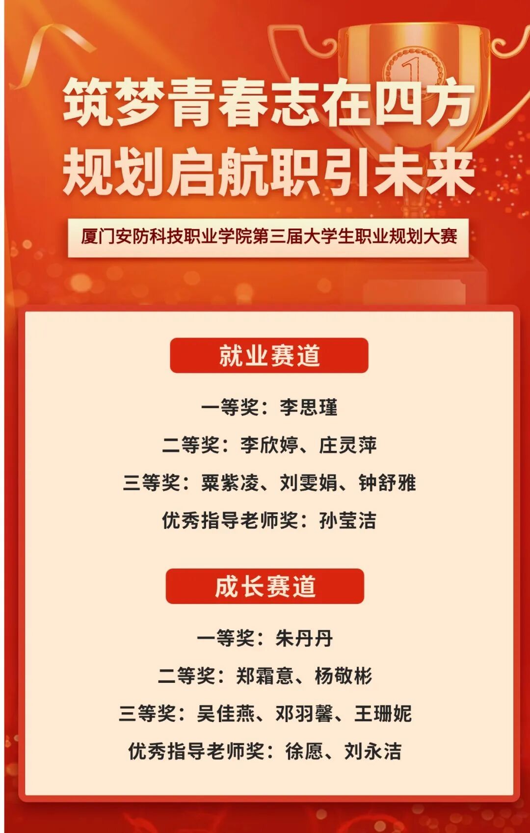 本次大赛践行“以赛促育、以赛促就”理念,有效强化了学生职业规划意识与就业竞争力。下一步,学校将持续完善“全程化、个性化、专业化”职业生涯教育体系,构建“课程+实践+指导”三位一体模式,深化校企合作、拓展实践基地,搭建精准就业对接平台,为学生提供一站式就业服务,培养适配市场需求的复合型人才,助力区域经济社会高质量发展。