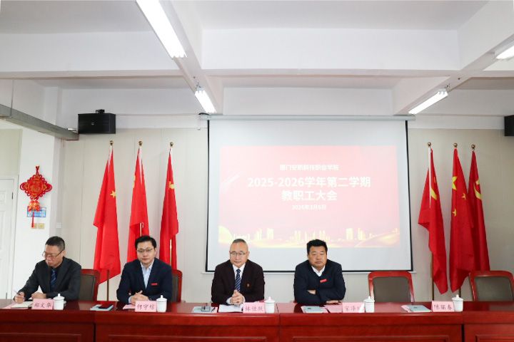 校党委书记林佳跃对上学年校党委工作作全面总结。他指出,过去一学年全校上下同心同德、同向同行,学校各方面建设成效显著。针对新学期工作,林佳跃书记强调,2026年学校党建工作将紧扣厦门市属民办高校党建工作三年攻坚行动要求,以“提质”为主题,构建新时代高质量党建工作新格局,重点构建“四位一体”组织体系、“四同促融”责任体系、党建质量保障体系、全面从严治党工作体系,推动党建与业务深度融合。他号召全体教职工以“龙马精神”扛起教育使命,以“一马当先”的担当、“快马加鞭”的效率、“马不停蹄”的毅力履职尽责,凝心聚力、久久为功,共同推动学校高质量发展。