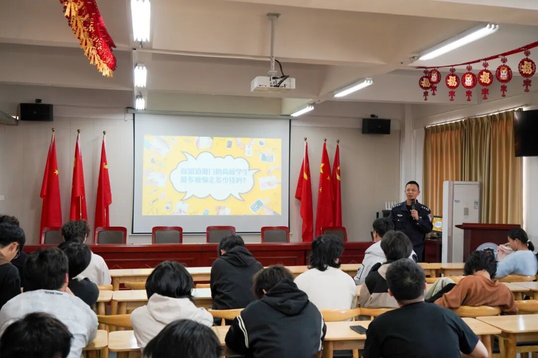 为切实增强我校学生防范电信网络诈骗意识和能力,2026年3月17日下午,我校联合厦门市公安局金海街道派出所,特邀颜明灿警官入校开展“高校学生防骗安全课”专题讲座。讲座聚焦刷单返利、冒充客服、虚假投资理财、校园贷等学生易受骗类型,结合典型案例深入剖析诈骗分子作案手法与话术套路,着重强调“不轻信、不透露、不转账”的防诈核心原则,进一步筑牢了我校学生反诈思想防线。