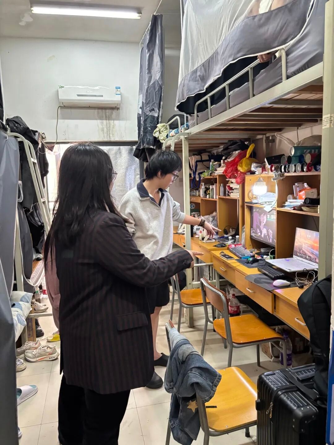 为全面排查整治学生宿舍安全隐患,筑牢宿舍消防安全防线,2026年3月18日下午,我校学生处组织各二级学院院长助理、辅导员开展学生宿舍安全专项检查工作。期间,检查小组重点围绕违规电器使用、易燃易爆物品存放及管制刀具等违禁物品携带等关键隐患点,逐楼层、逐宿舍进行全面细致排查,对发现的违规物品现场登记收缴、安全隐患现场督促整改,同步向学生普及宿舍消防安全知识、违规用电危害及应急逃生技巧,进一步强化学生宿舍安全管理责任,提升学生安全防范意识。
