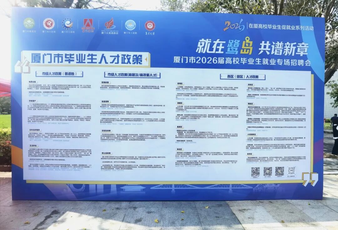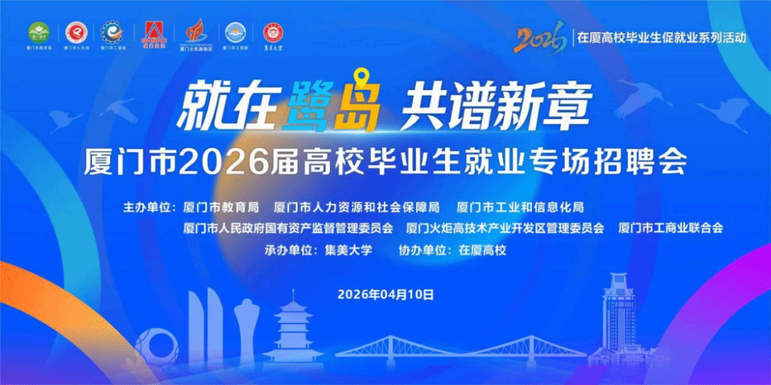 为深入贯彻落实党中央、国务院关于促进高校毕业生就业创业的决策部署,健全人才供需对接机制,推动毕业生更充分、更高质量就业,4月10日,由厦门市教育局、厦门市人力资源和社会保障局等部门联合主办的“就在鹭岛 共谱新章”——厦门市2026届高校毕业生促就业系列活动在集美大学正式启动,同期举办专场招聘会。