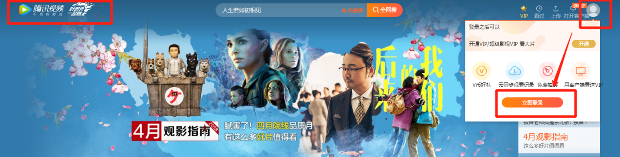 二、进入腾讯视频主页面,点击右上角【立即登录】