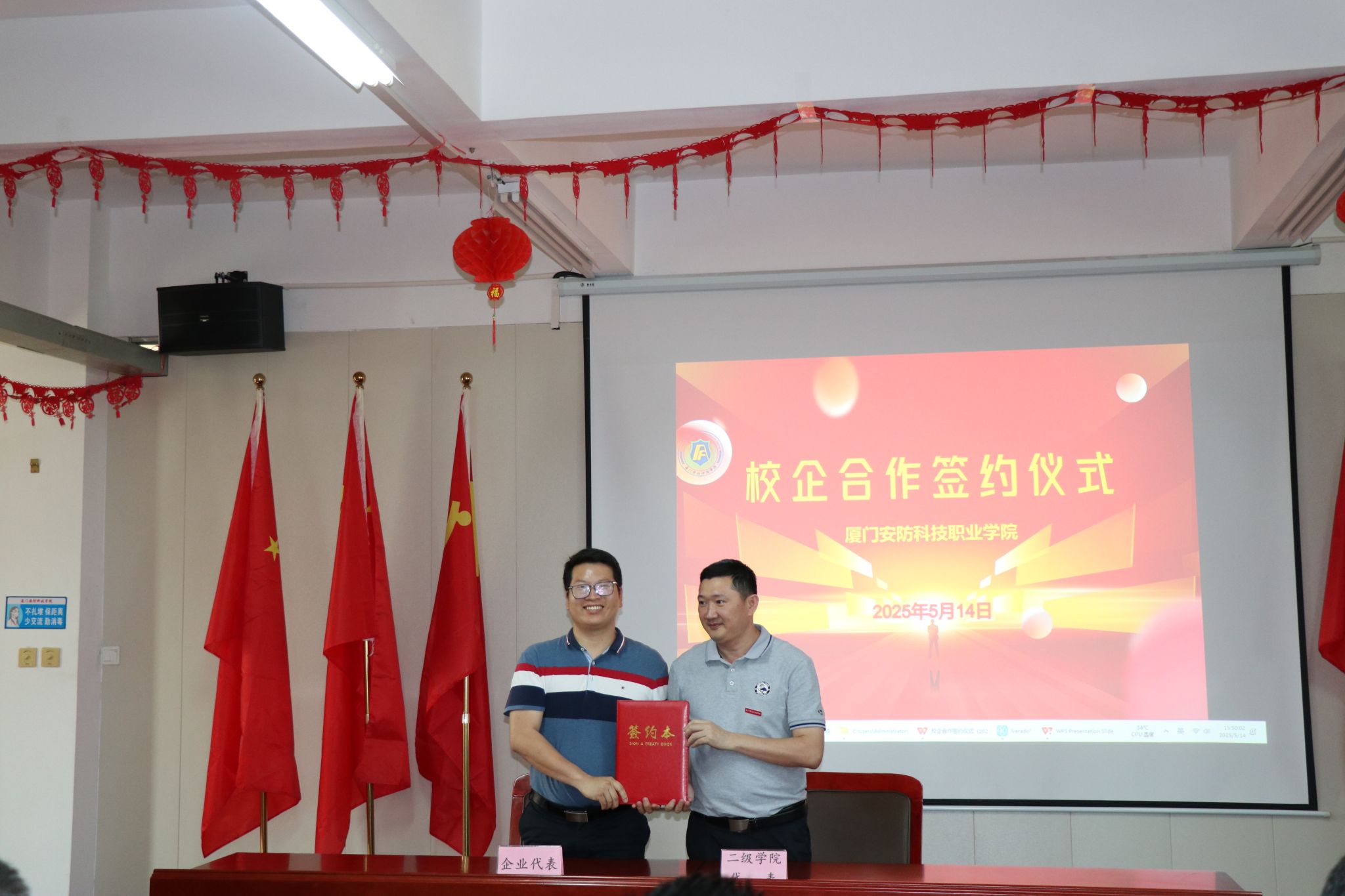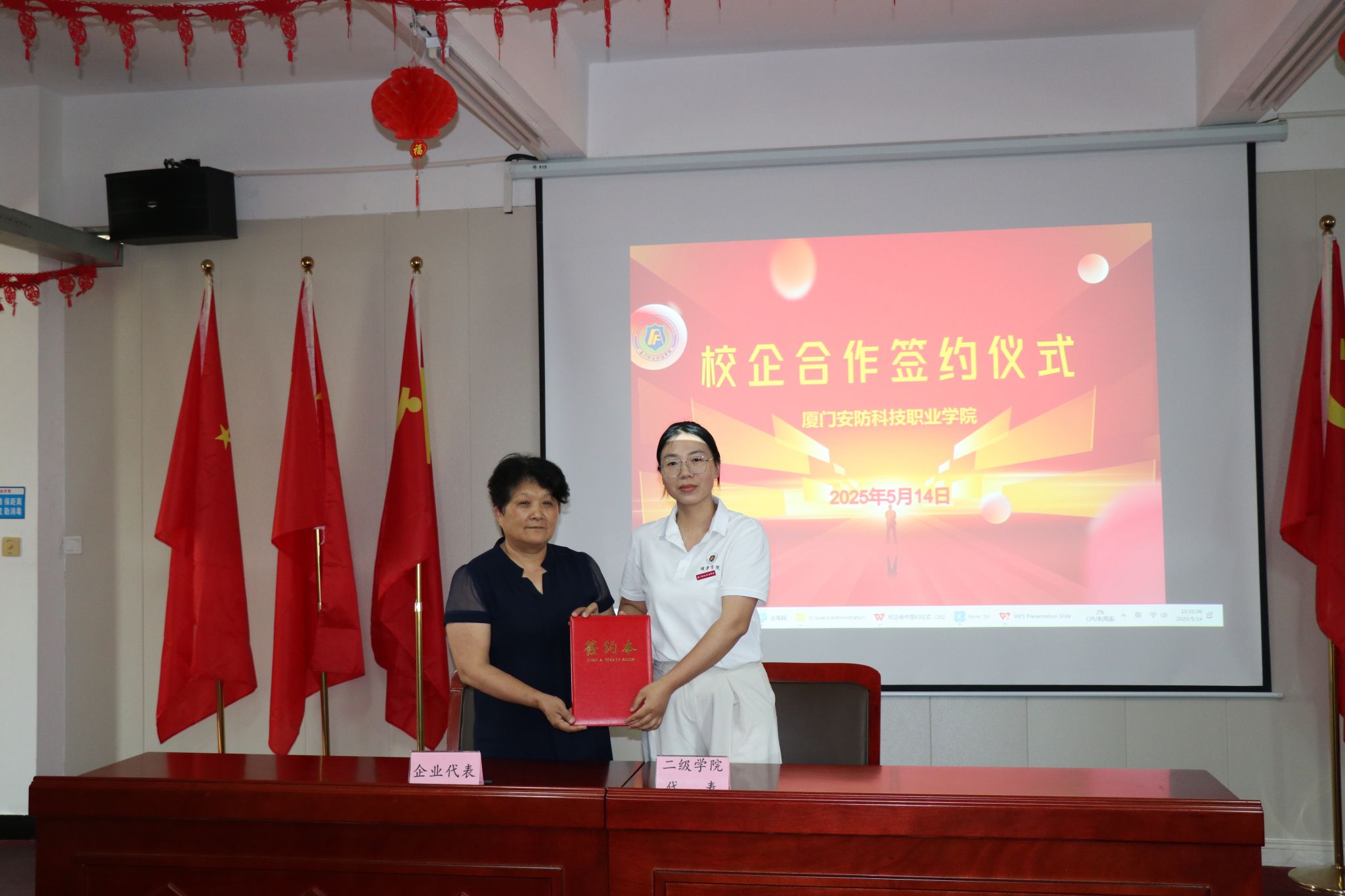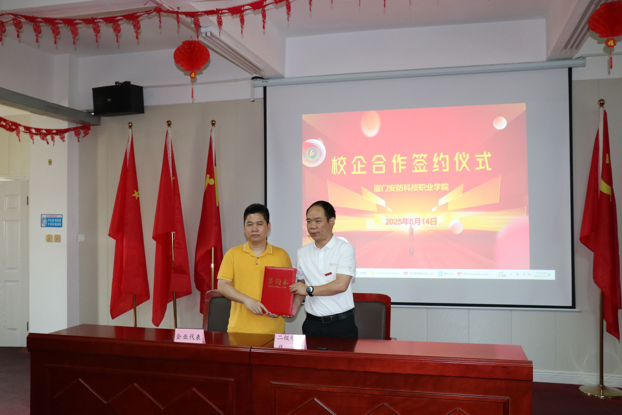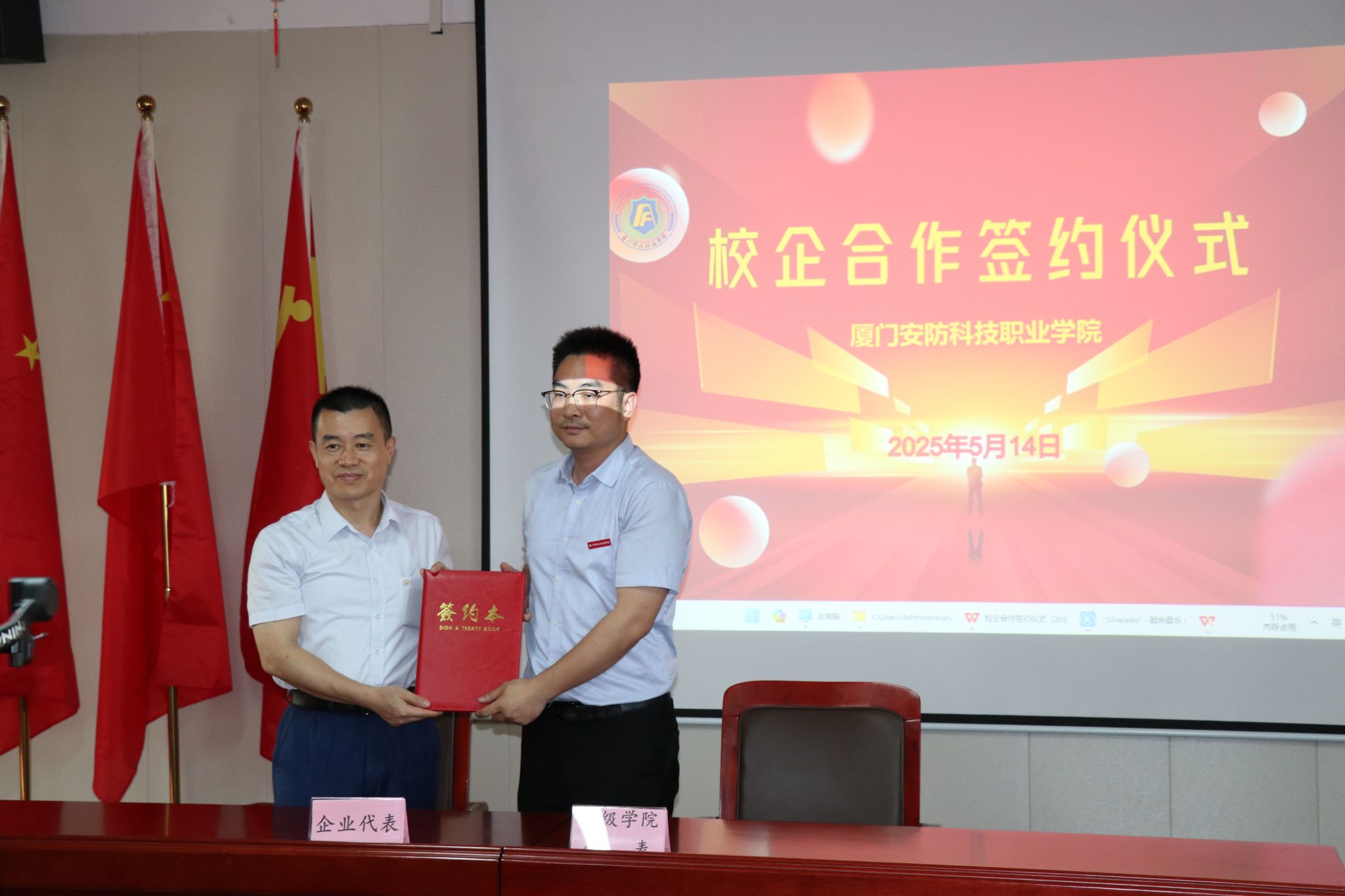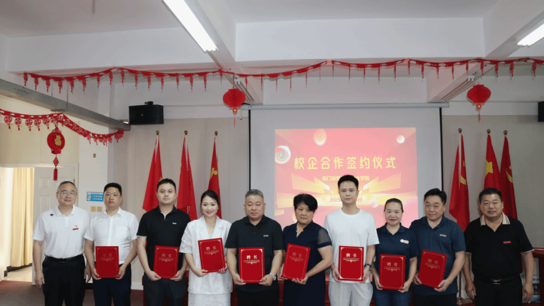 厦门市保安集团有限公司总经理赖敏强、厦门华奇商贸有限公司总经理罗建华、厦门派课教育科技有限公司总经理陈艺伟、厦门爱欣老年公寓院长张玉虾分别与我校交通学院、工程学院、教育学院、软件设计学院、健康学院院长签订校企合作协议,为深化产教融合、推动职业教育高质量发展注入新动力。