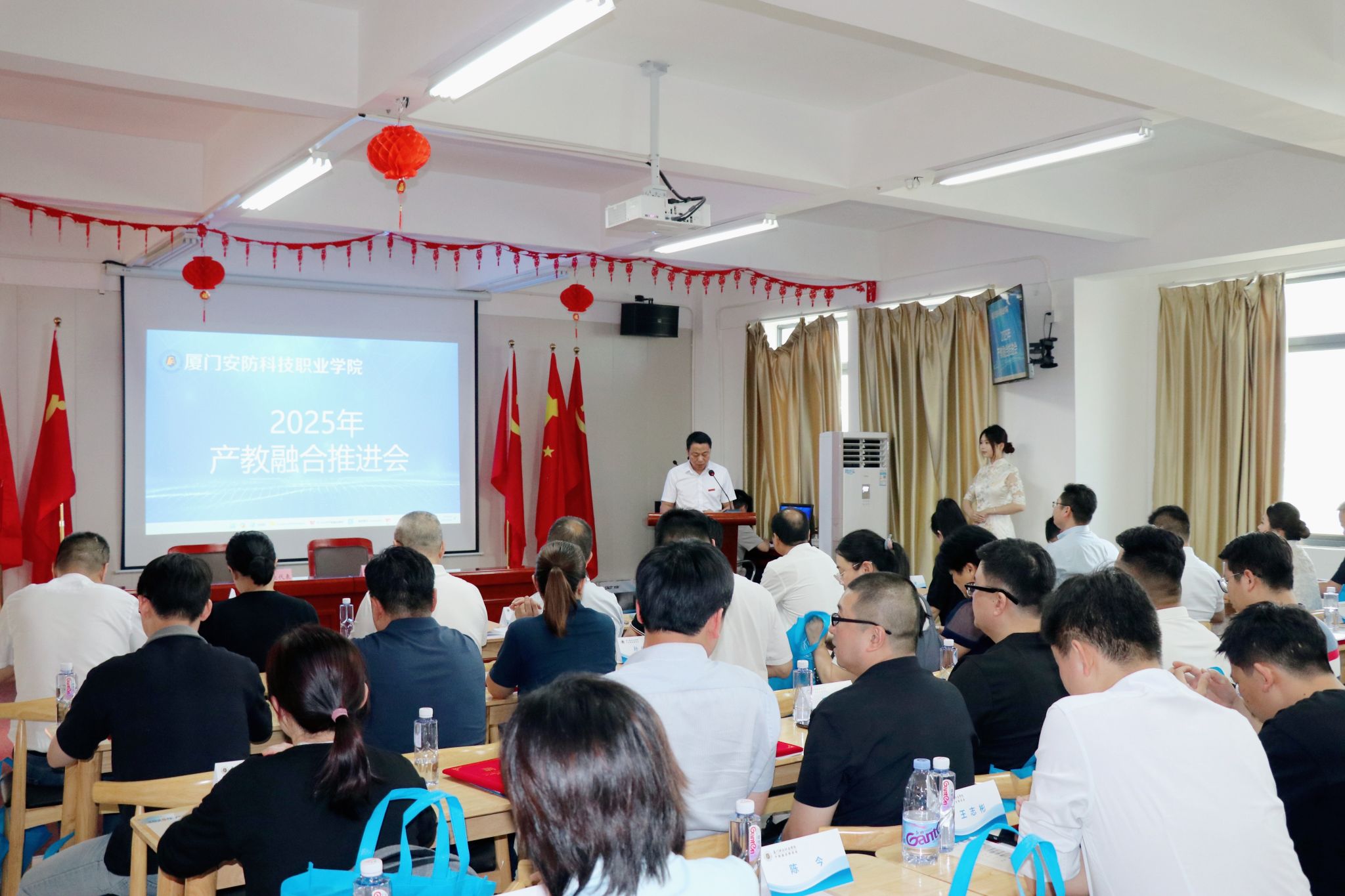 2025年5月14日,厦门安防科技职业学院于校学术报告厅举办2025年产教融合推进会。会议由教务处处长胡小春主持。