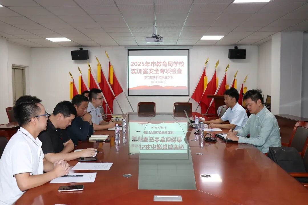 为全面落实实训室安全管理工作,根据厦门市教育局《关于做好2025-2026学年学校实验室安全隐患排查工作的通知》(厦教便函〔2025〕92号)文件要求,10月23日,市教育局委派专家丁明荣、林建章一行莅临我校开展实训室安全专项检查。副校长何守信、教务处处长胡小春、实训中心负责人及相关人员参与迎检工作。