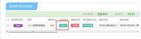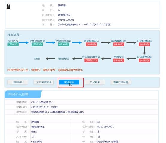 选择要报考的科目,点击“提交”按钮,返回到考生报名页面,点击“口试报考”